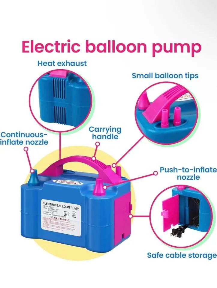 Make event setup a breeze with our electric balloon pump machine, perfect for weddings, parties, corporate events, and balloon dΓ©cor setups. This high-powered pump allows you to inflate balloons quickly and effortlessly, saving time and effort (especially when making balloon arches!)