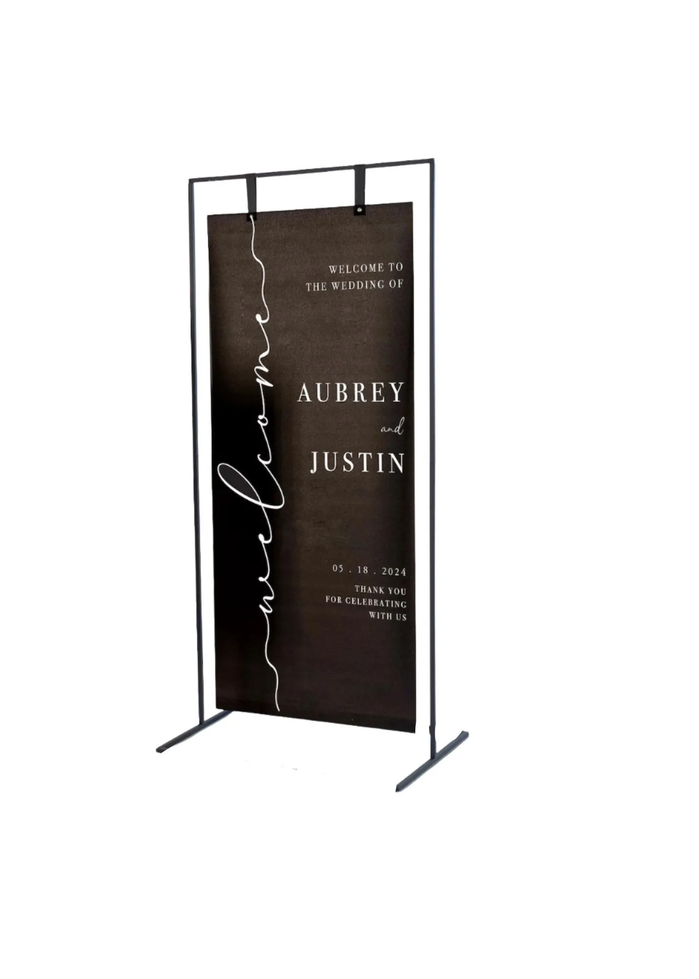 Elevate your event signage with our modern black hanging sign stand! Perfect for weddings, markets, corporate events, and more, this versatile stand is designed to showcase both linen signs and acrylic signs β¨ with elegance (custom signs available - check out my other listings!)