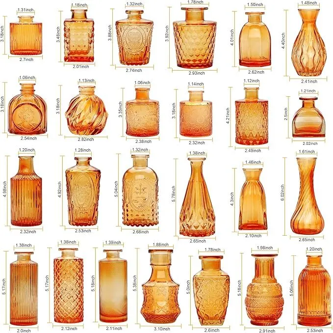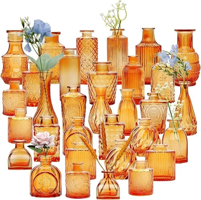 Enhance your table settings with our stunning orange bud vases, perfect for adding a warm, vintage-inspired touch to your decor. Whether you're planning a boho-chic wedding, a fall-themed event, or a modern celebration, these vases create a bold yet elegant statement.