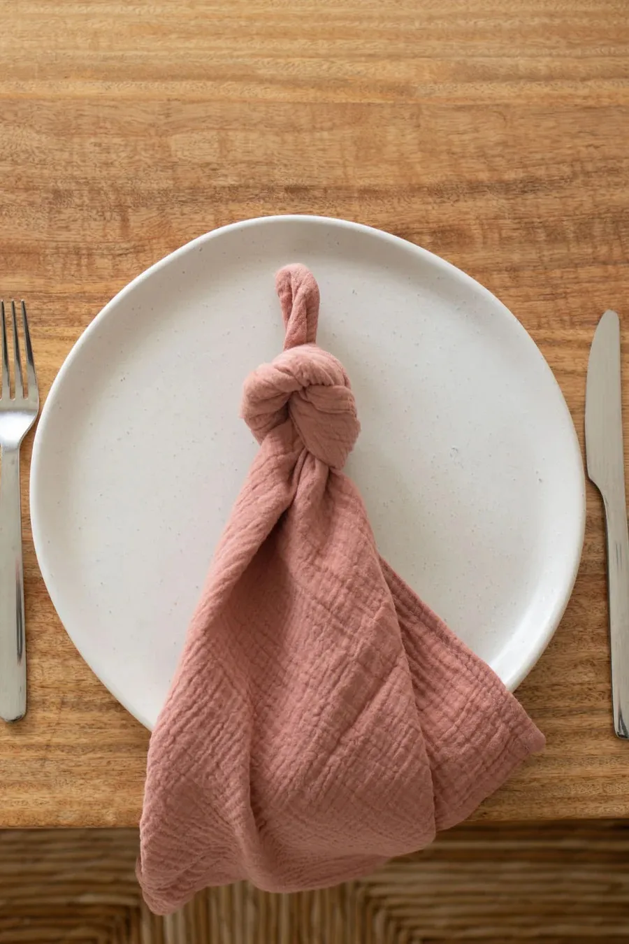 Elevate your table settings with these luxurious Pink Clay cloth napkins. Crafted from two layers of 100% GOTS‑certified organic muslin cotton with a charming waffle texture, they offer a soft, elegant finish that complements modern and rustic event décor alike. Approx 18" square.