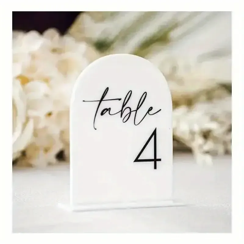 Guide your guests in style with these sleek and modern white acrylic arch table numbers – a perfect match for weddings, receptions, and upscale events.